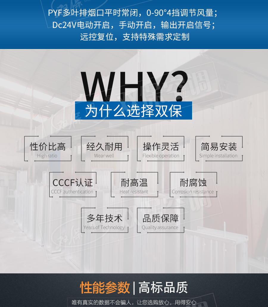 江蘇雙保空調(diào)有限公司—多葉排煙口 閥門平時(shí)常閉; Dc24V電動(dòng)開啟,手動(dòng)開啟,輸出開啟信號(hào); 手動(dòng)復(fù)位。