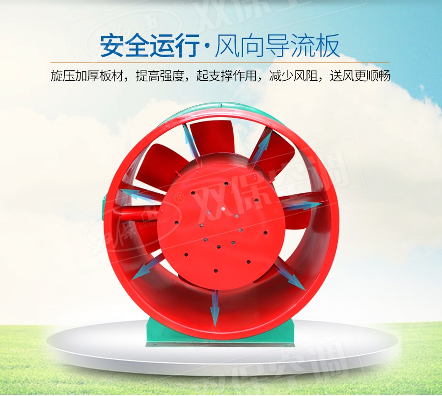 【風機特點】具有效率高、噪聲低、用途廣,平時通風接氣與火災時消防排煙一機兩用等
